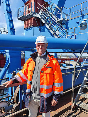 This would not have been possible without the A-team. Following the ceremony, Chief Engineer Segerkrantz and technology-loving Bashkov stood proudly on top of the Alpha crane, looking out over the large terminal area to the Baltic Sea. Rain clouds were gathering, but Bashkow smiled: "I just love these huge cranes," he said. "And I like the opportunity to always tackle new things together," added Segerkrantz. "Our whole team is really extraordinary!"