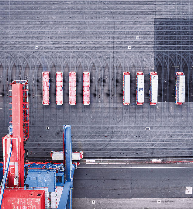 To ensure that the AGVs on the terminal site were able to find their way reliably, two technologies were combined: the AGVs had an antenna that was able to identify the RFID transponders submerged every 2 metres in a grid formation in the terminal floor. The transponder locations, which were measured using extreme precision, were used as anchor points. The AGV travelled the distances between the transponders using an inertial navigation system based on the vehicle acceleration values.