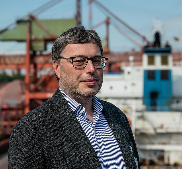 On board the Constantia, unloading operations have been advancing. The terminal operated by HHLA and the steel group Salzgitter AG can handle up to 100,000 tonnes of bulk cargo every day. Looking from the unloading crane into the cargo hold of the freighter, the challenge for automation becomes clear: “Our equipment must be able to perform complex movements and keep an eye on the working environment,” Mann explains.