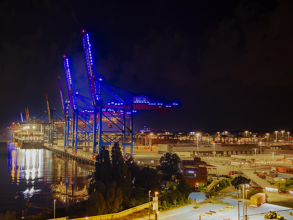 Hamburg residents and visitors from all over the world can view the entire artwork until September 21. Until then, the port, Speicherstadt historical warehouse district and HafenCity will be bathed in magical blue light. HHLA is making a significant contribution to this light spectacle: a total of 17 container gantry cranes at the Altenwerder, Burchardkai, Tollerort and O’Swaldkai terminals are impressively illuminated, as are another ten cranes in Hamburg’s historic Speicherstadt, the company’s headquarters.