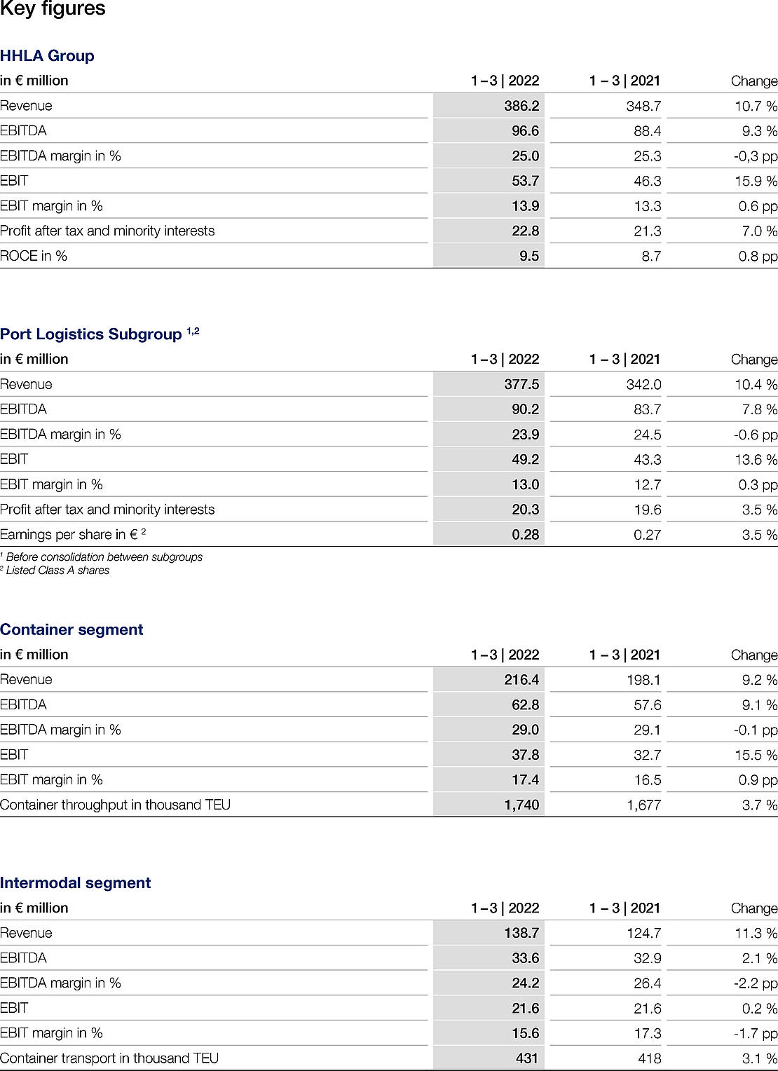 - Chairwoman of the Executive Board, Angela Titzrath: “The successful business performance in a difficult, uncertain environment underscores the reliability and strength of HHLA.”