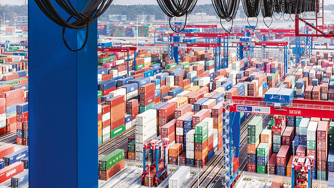 Automated container yard at the HHLA Container Terminal Burchardkai in Hamburg.