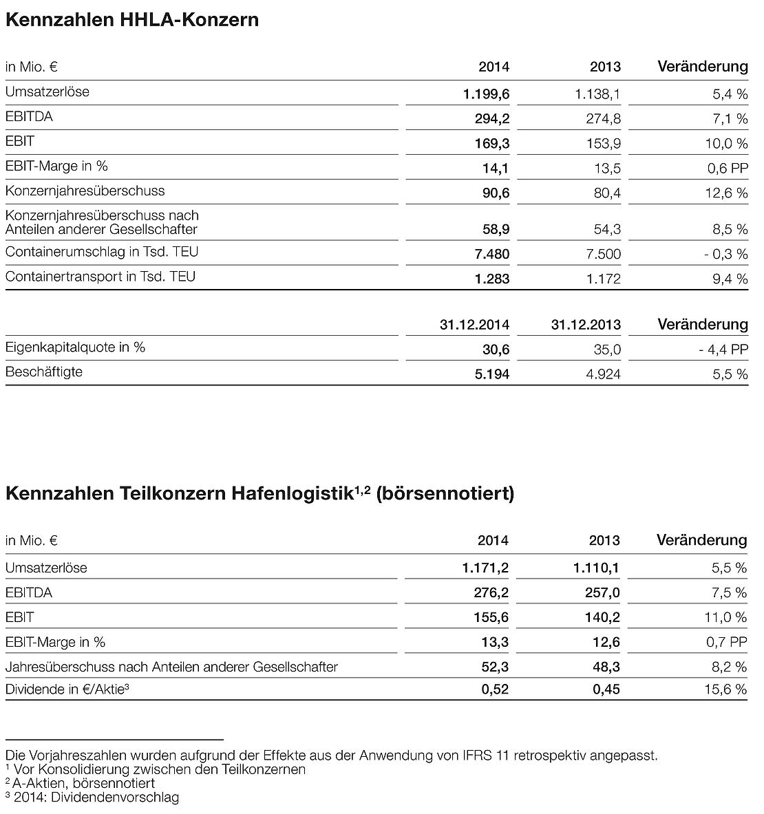 Hamburger Hafen und Logistik AG (HHLA) improved its operating result (EBIT) by 10 % year-on-year to € 169.3 million in the 2014 financial year. The company’s container terminals in Hamburg set a new throughput record of 7.2 million standard containers (TEU). The Intermodal companies operating in rail and road services in particular achieved another substantial increase of 9.4 % in their transport volumes to 1.3 million TEU.