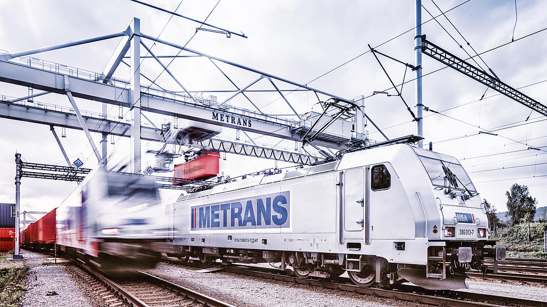 Metrans train at the inland terminal in Ceska Trebova.