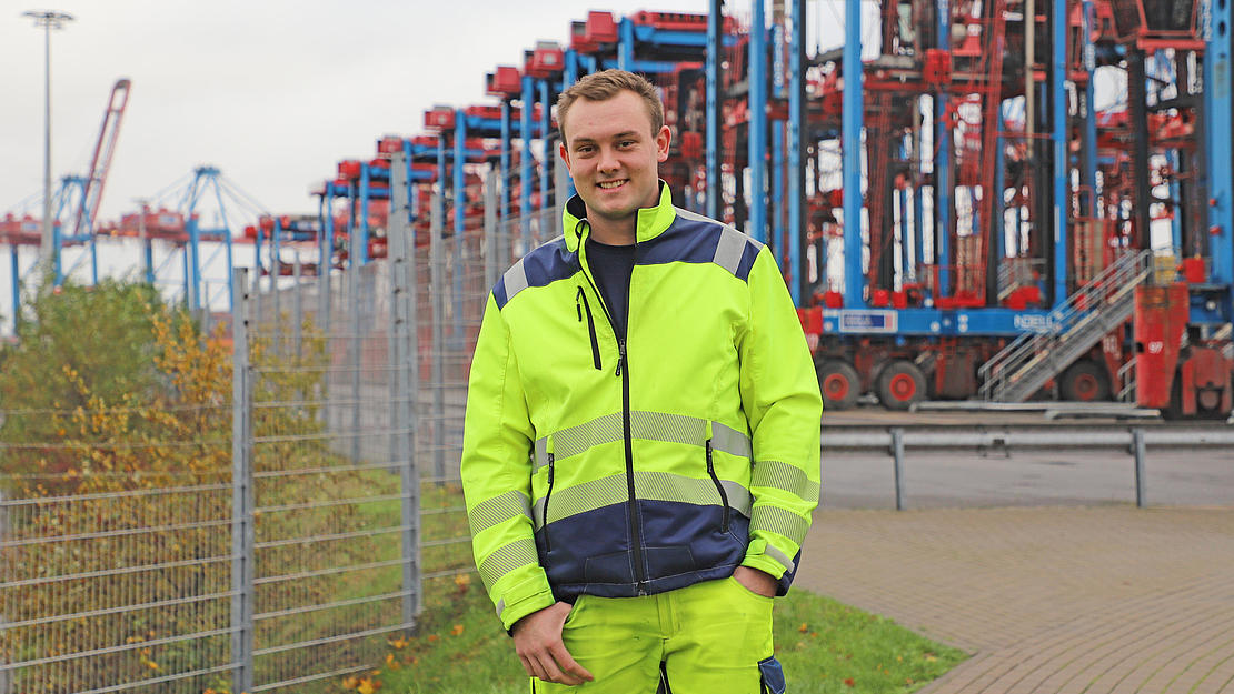 Rohde was first drawn to the large handling equipment at the port during his school internship in year 9, when he spent three weeks on work experience at HHLA’s Burchardkai and Tollerort terminals. “I can see the container gantry cranes from my home in Vier- und Marschlande. I come from an agricultural background, so I’ve had experience of large machinery since I was little. As a result, I’ve been fascinated by the port since my early years,” says Rohde, who began his apprenticeship at HHLA after his Abitur school-leaving qualification.