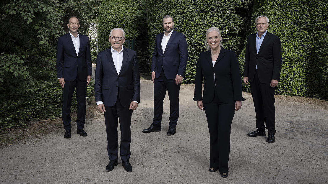 Vorstand und Aufsichtsratsvorsitzender der HHLA auf der Hauptversammlung 2021 (v.l.n.r.: HHLA-Vorstand Jens Hansen, AR-Vorsitzender Prof. Dr. Rüdiger Grube, HHLA-Vorstand Torben Seebold, HHLA-Vorstandsvorsitzende Angela Titzrath, HHLA-Vorstand Dr. Roland Lappin)