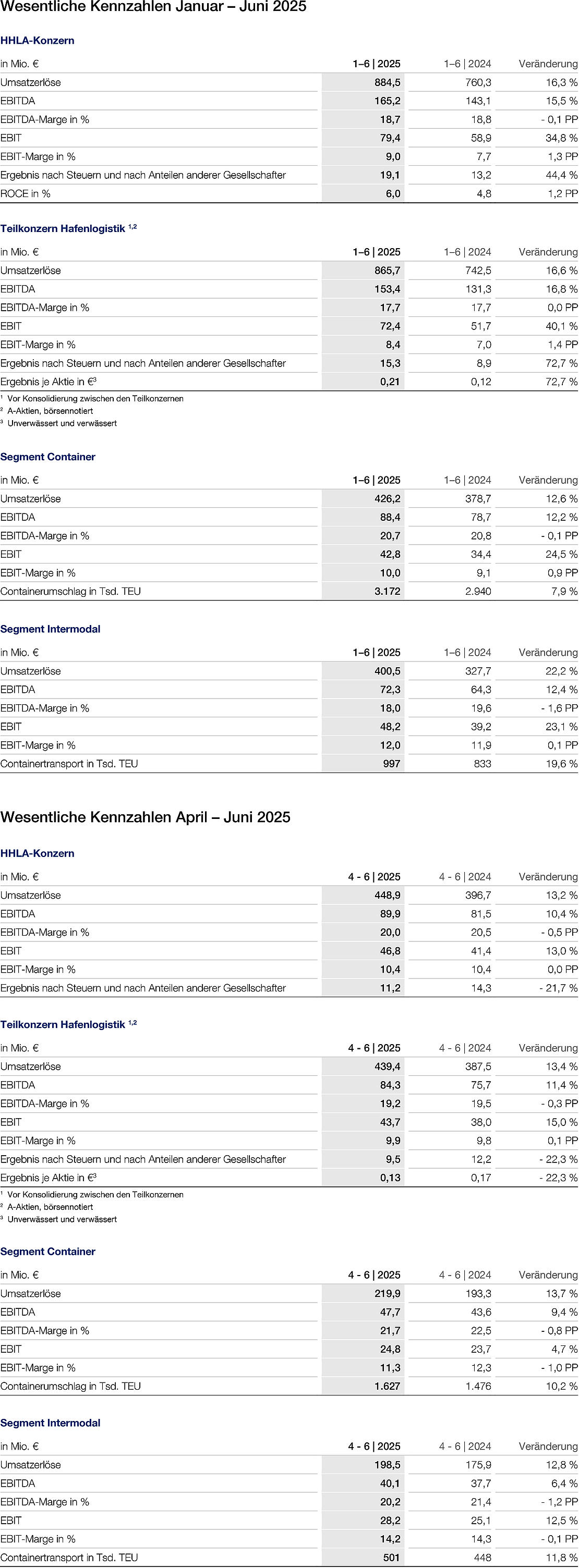 Teilkonzern Hafenlogistik: Geschäftsentwicklung Januar – Juni 2025