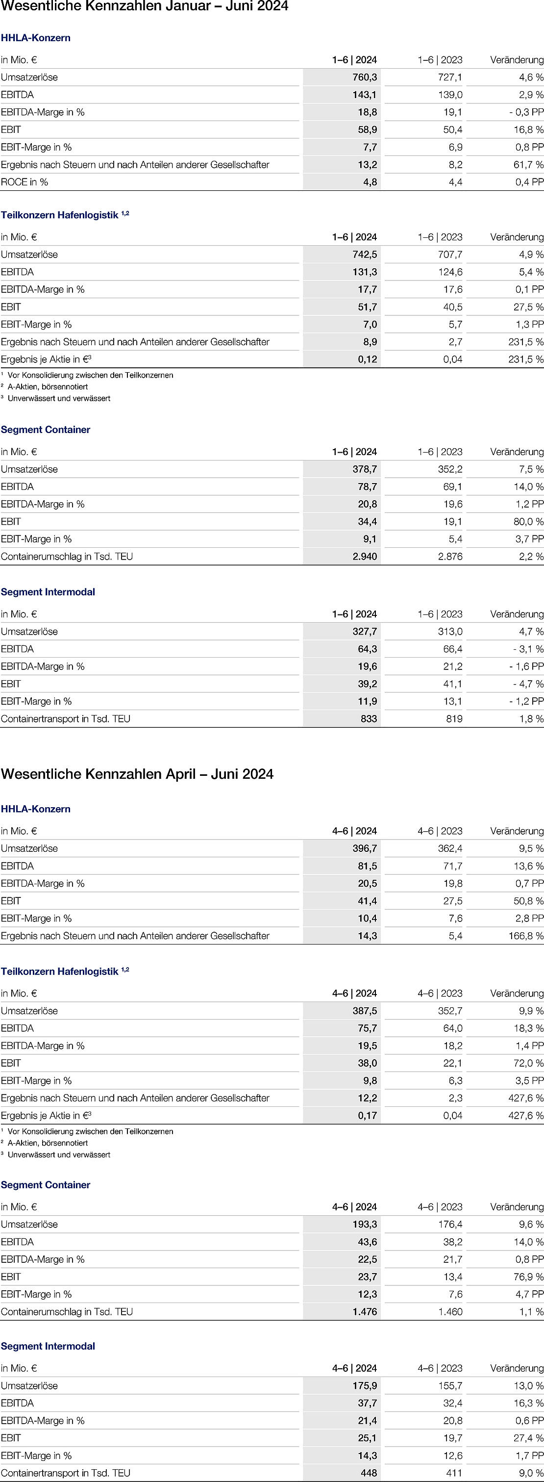 Teilkonzern Hafenlogistik: Geschäftsentwicklung Januar – Juni 2024