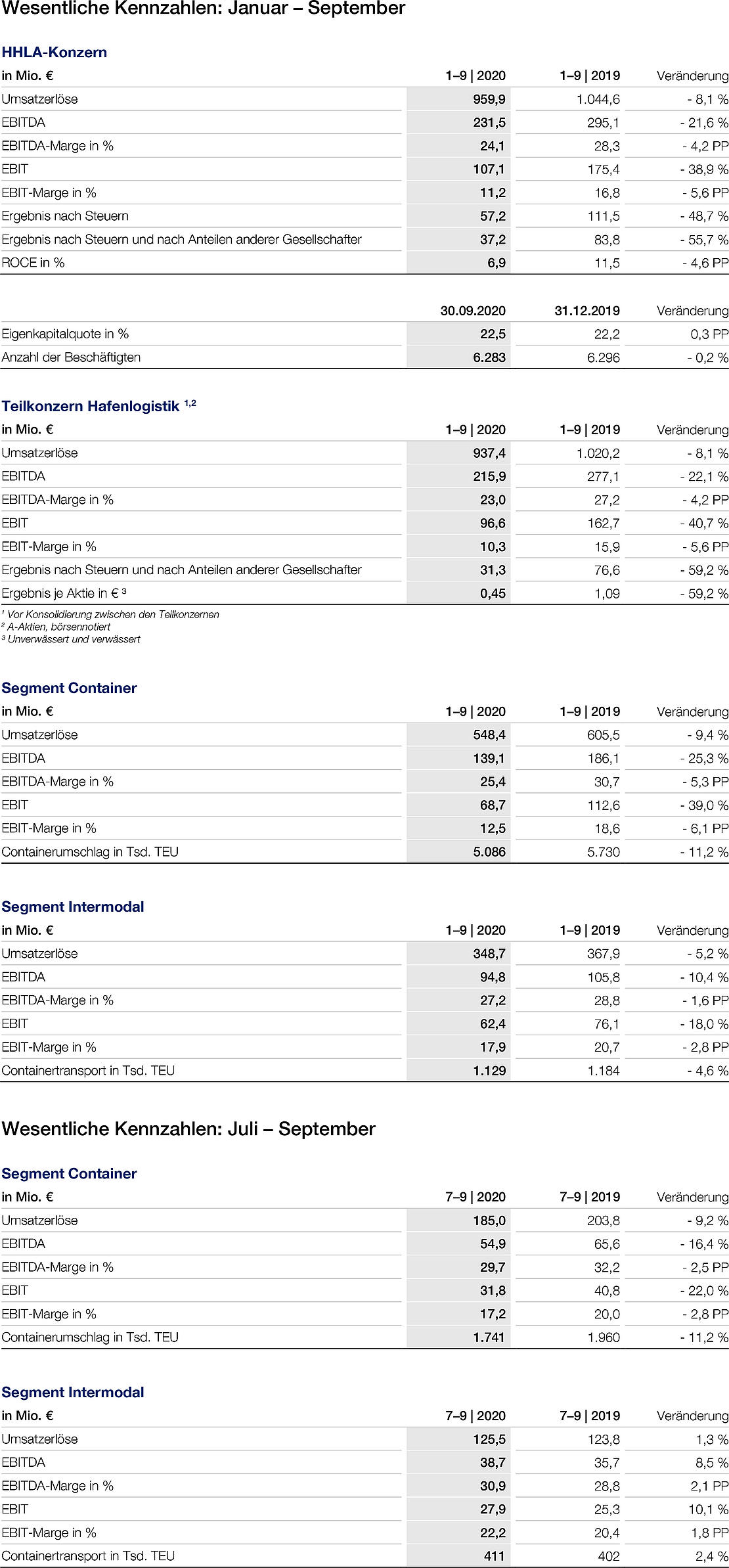 Teilkonzern Hafenlogistik: Geschäftsentwicklung Januar – September 2020
