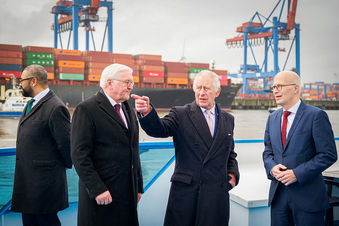 Während ihres ersten Staatsbesuchs in Deutschland waren der britische König Charles III. und seine Frau Camilla am Freitag zu Gast in Hamburg. Im Mittelpunkt des Besuchs stand insbesondere das Thema Klimaschutz, denn der Monarch setzt sich seit Jahrzehnten für die Themen Nachhaltigkeit und Umwelt ein. Angela Titzrath, Vorstandsvorsitzende der Hamburger Hafen und Logistik AG (HHLA), begleitete Charles III. sowie den Bundespräsidenten, Frank-Walter Steinmeier, auf einer Rundfahrt durch den Hamburger Hafen.
