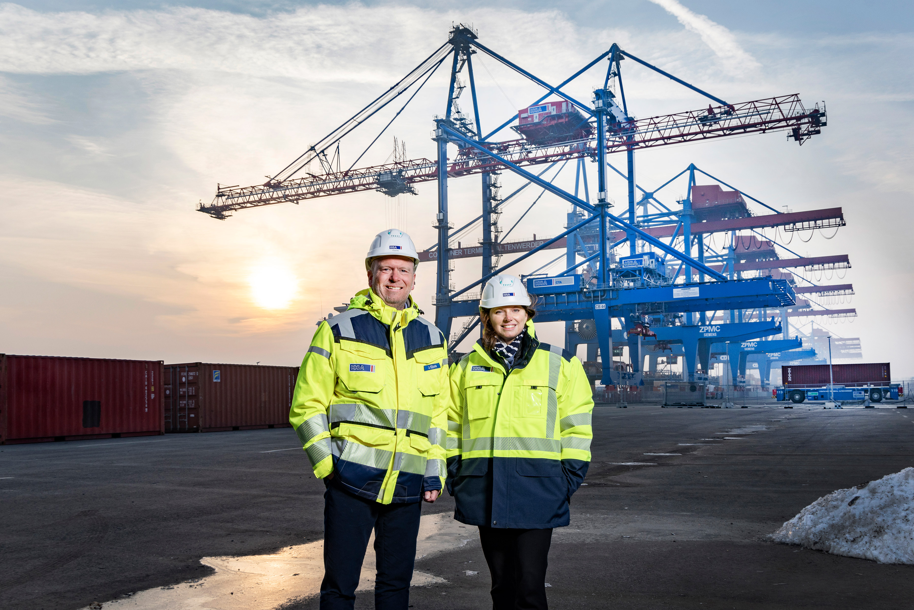 Senator of Economic Affairs Dr. Melanie Leonhard and Jeroen Eijsink (CEO of HHLA) at Container Terminal Altenwerder (CTA).
