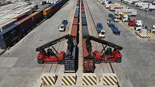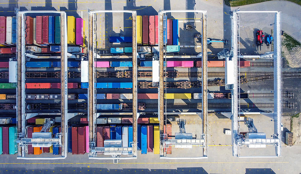 Container handling at Metrans terminal in Budapest