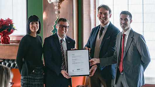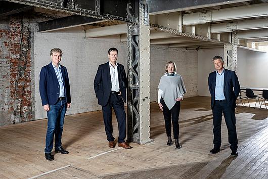 Ceremonial signing of the cooperation agreement in Hamburg's Speicherstadt with Michael Fussner and Rainer Schluff (both Managing Directors of HHLA Real Estate), Prof. Annette Bögle and Prof. Harald Garrecht (l.t.r. )