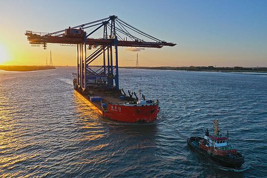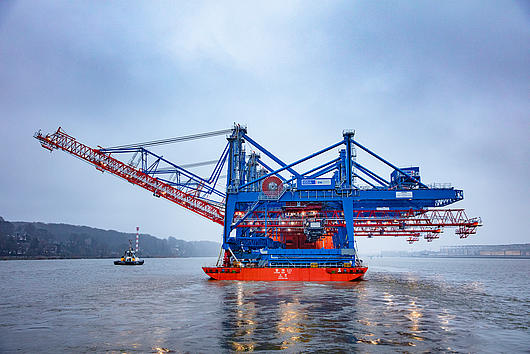 The largest container gantry cranes currently have arrived at the Port of Hamburg and will be set up at HHLA Container Terminal Burchardkai (CTB).