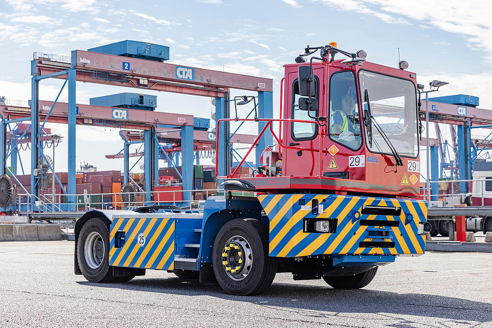 The automated guided container transport vehicles (AGVs) play an important role for the climate friendliness at the CTA.