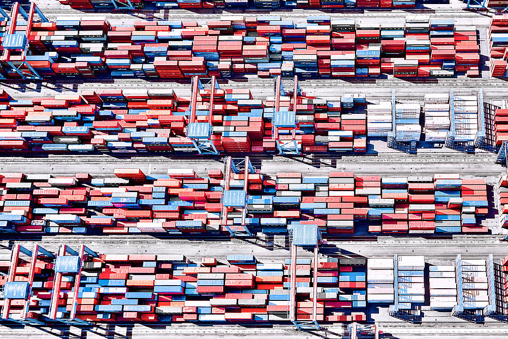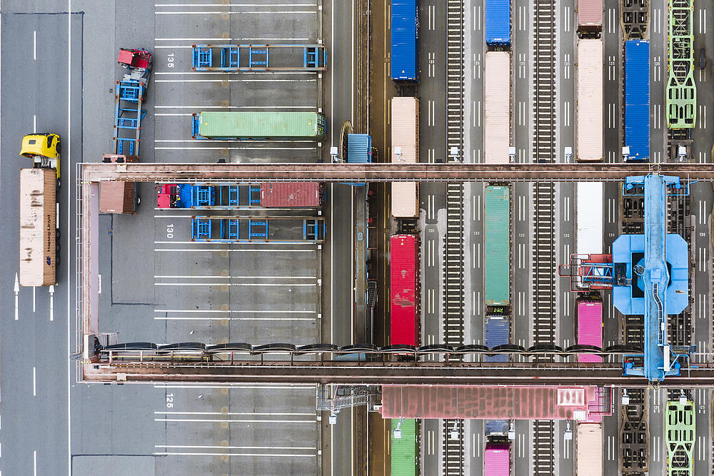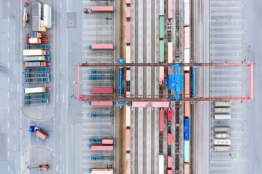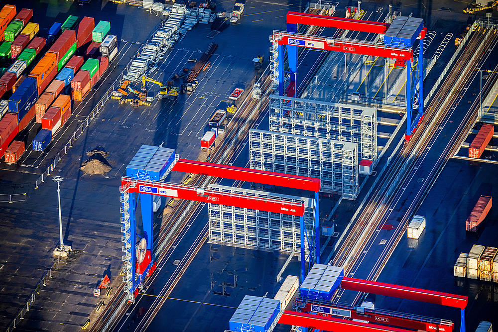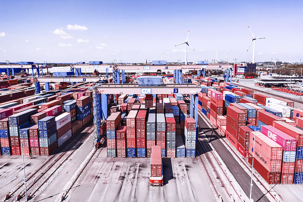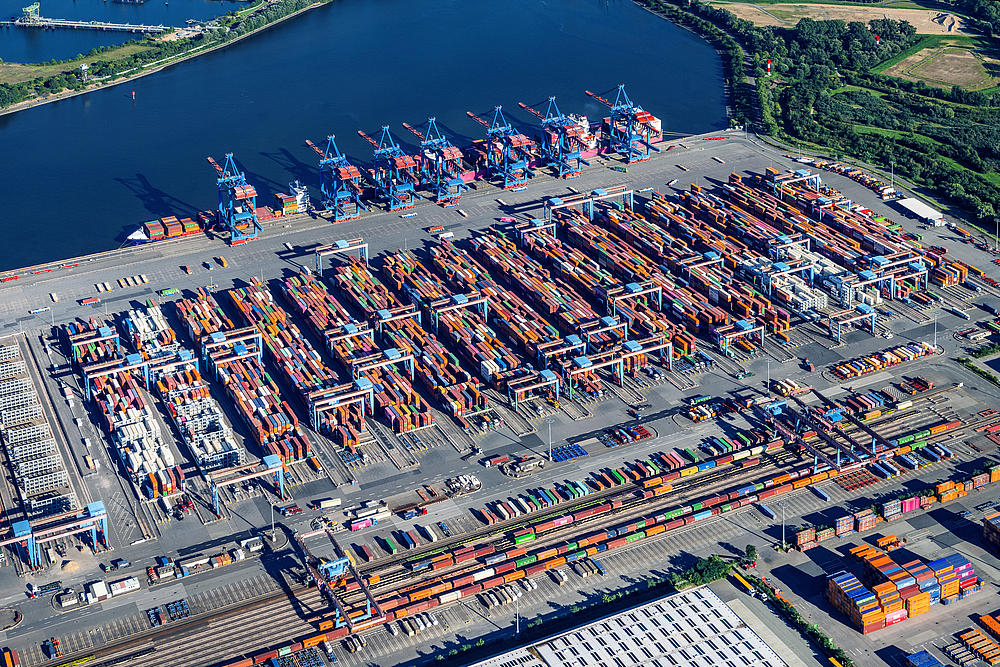 Aerial view of HHLA Container Terminal Altenwerder (CTA) in Hamburg.