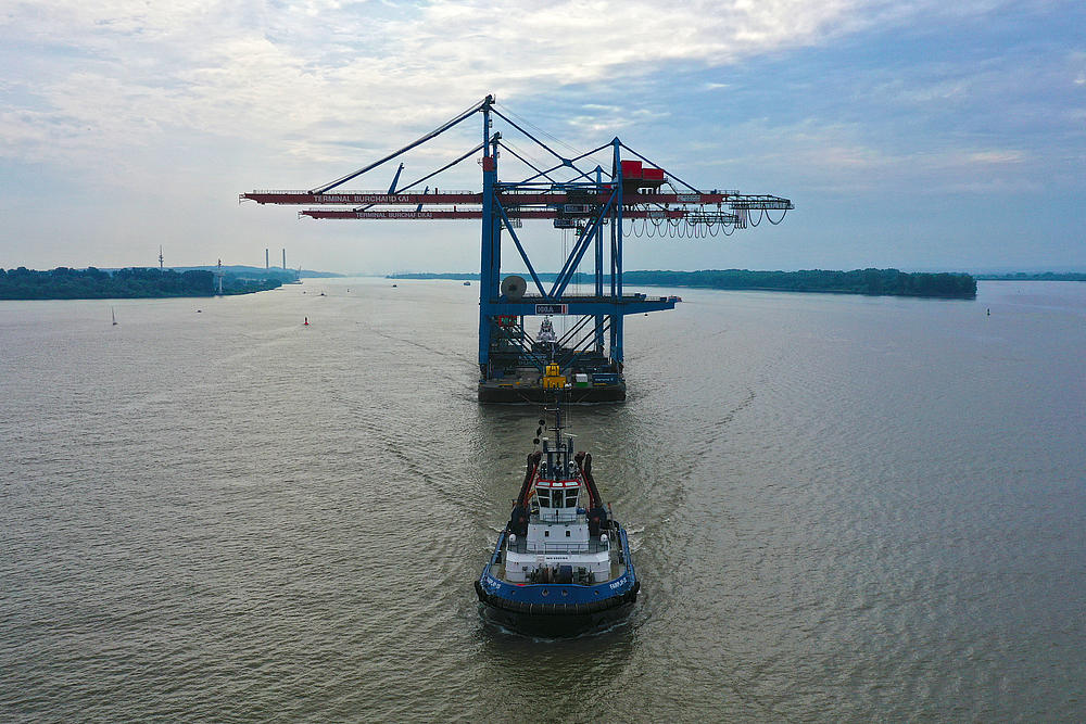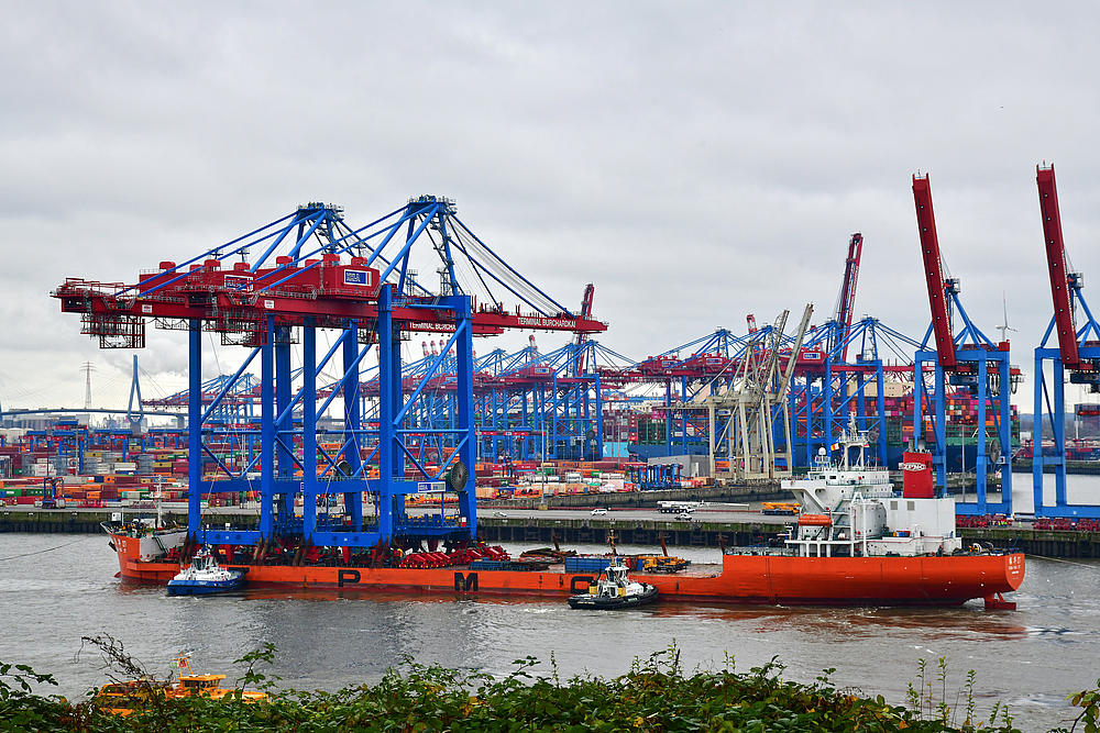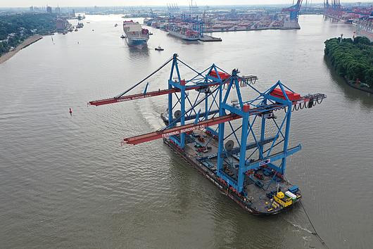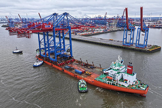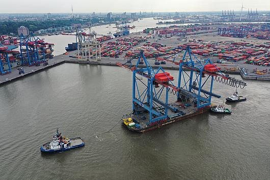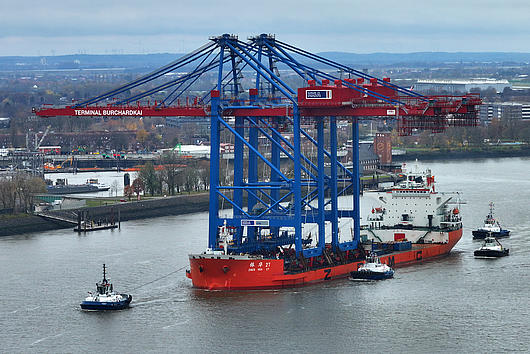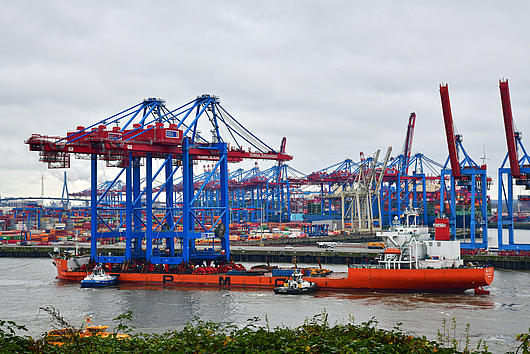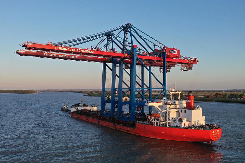 Arrival of new container gantry cranes for the Burchardkai in Hamburg