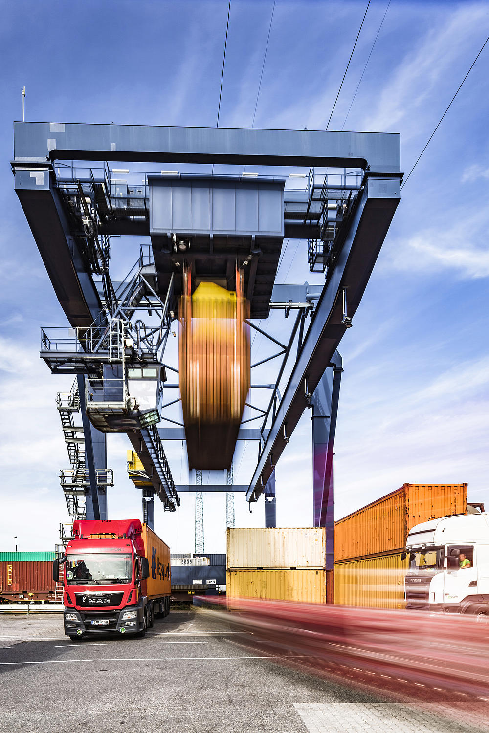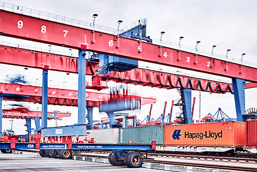 Container handling by rail crane at the Container Terminal Altenwerder.