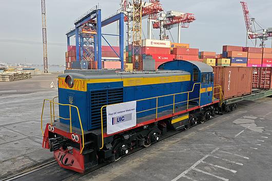 Container block train from UIC at HHLA Container Terminal Odessa