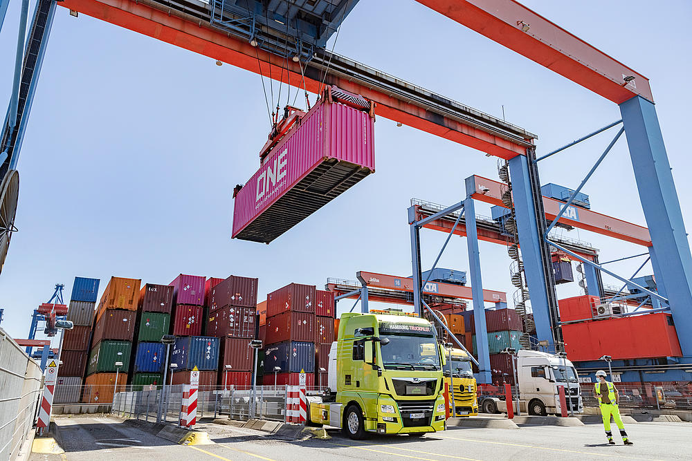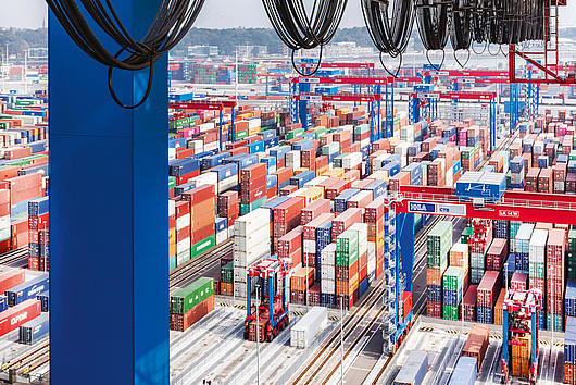 Container handling at HHLA's terminals in the Port of Hamburg.