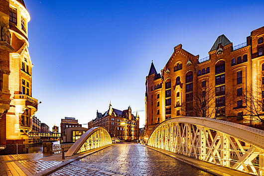 Illumination of World Heritage Site Speicherstadt goes climate-friendly.