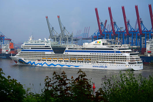 M/S „AIDAsol" arriving at the harbour in Hamburg.