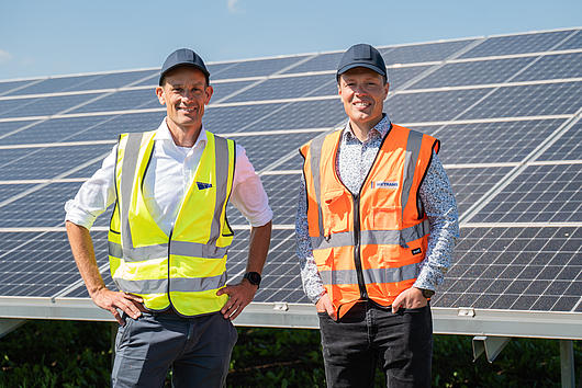 Jan Knievel, Enerparc AG and Carsten Giesel, Managing Director of Metrans Rail Deutschland at the solar park in Schleswig-Holstein.