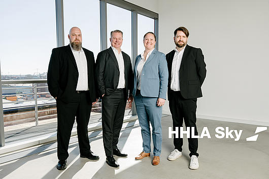 Managing directors of HHLA Sky alongside the former managing directors of Third Element Aviation. From left to right: Benjamin Wiens, Matthias Gronstedt, Wiebke Kropp-Büttner, and Marius Schröder