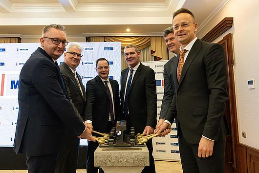 Ceremonial groundbreaking ceremony in Szeged: (from left to right) Peter Kiss, Attila Zahalka, László Nagy, László Botka, Béla Mihálffy und Péter Szijjártó