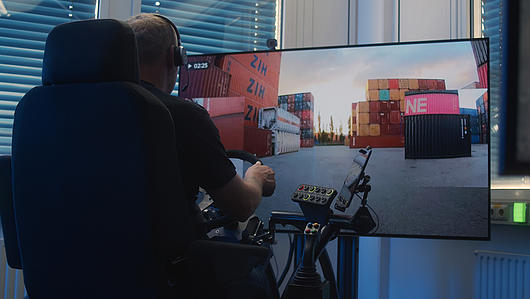 HHLA employee tests the training control centre at CTA developed as part of PortSkill 4.0 project.