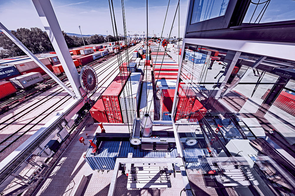 Container handling at the Metrans terminal in Budapest.