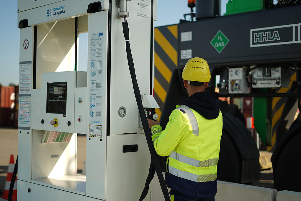 Equipment such as straddle carriers, empty container stackers, forklift trucks, reach stackers, tractor units and heavy goods vehicles can be efficiently refuelled with green hydrogen at 350 bar in the Port of Hamburg.