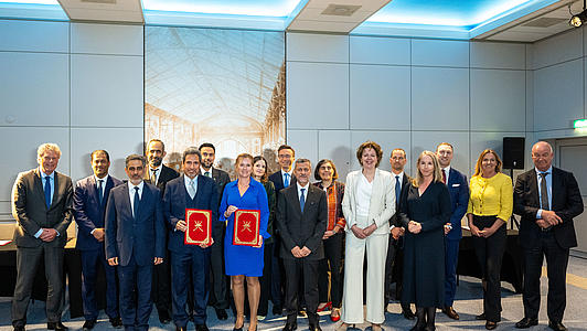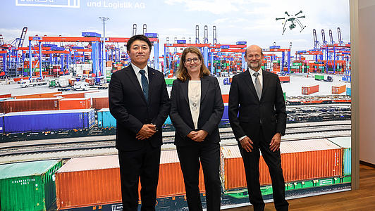 The future of logistics is green – and hydrogen plays a central role in this. As a European network logistics provider with seaport terminals in Hamburg, Trieste, Tallinn and Odessa, we are focusing on this key technology to make port operations climate-neutral step by step. In doing so, we are positioning ourselves globally. Together with partners, we signed an agreement in 2025 for the world's first import corridor for liquid hydrogen from Oman to Europe – deliveries are scheduled to start in 2029.